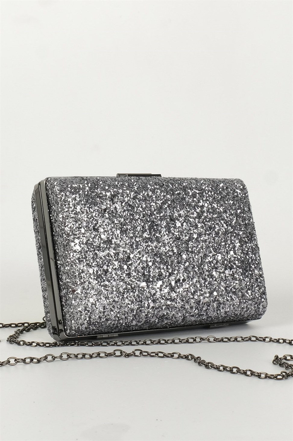 Kadın Abiye Çanta Platin Pul (90-0036-)