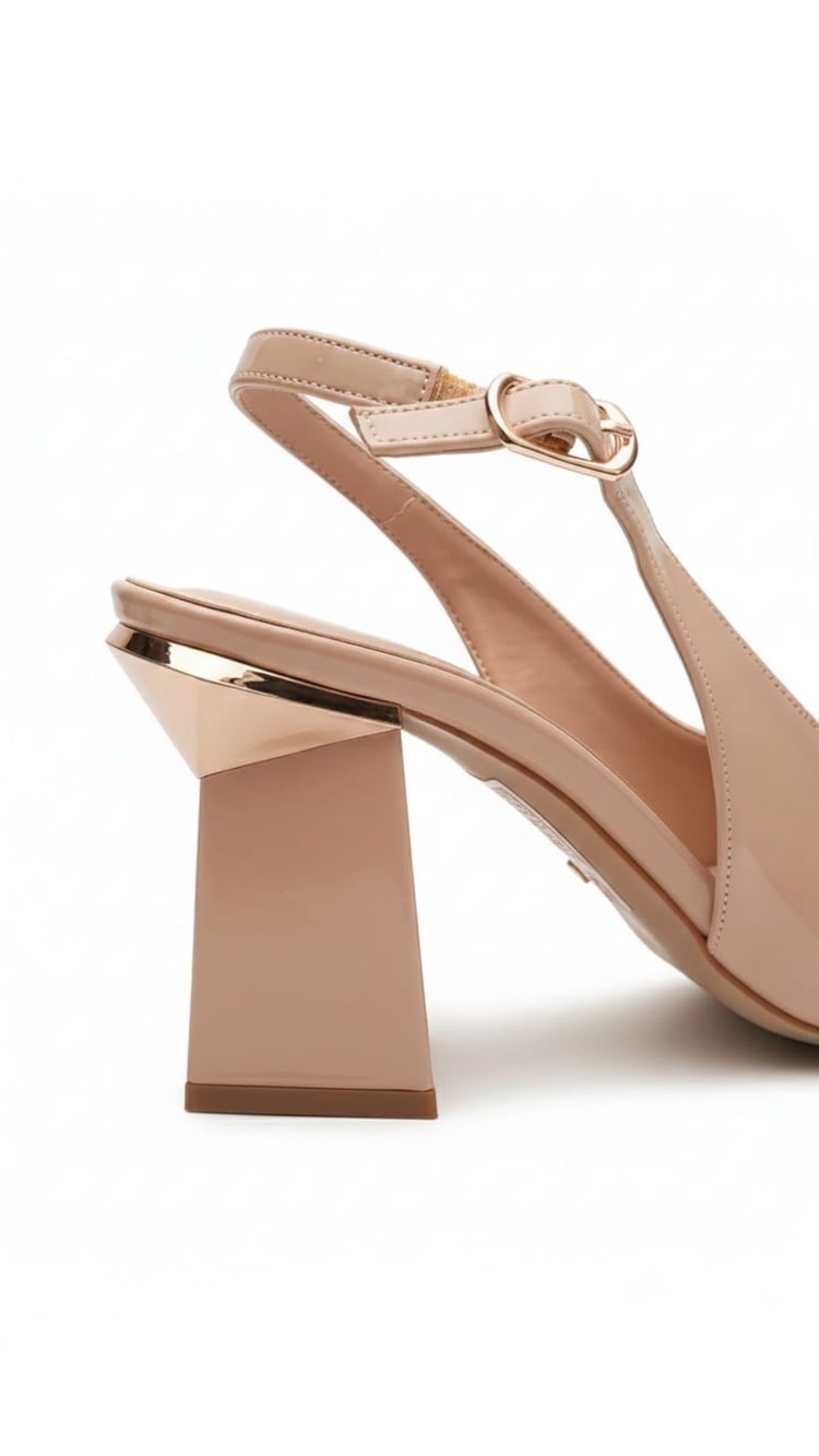 Kadın Arkası Açık Bilekten Bantlı Sivri Burun Stiletto Kalın Topuklu Ayakkabı Bej Rugan