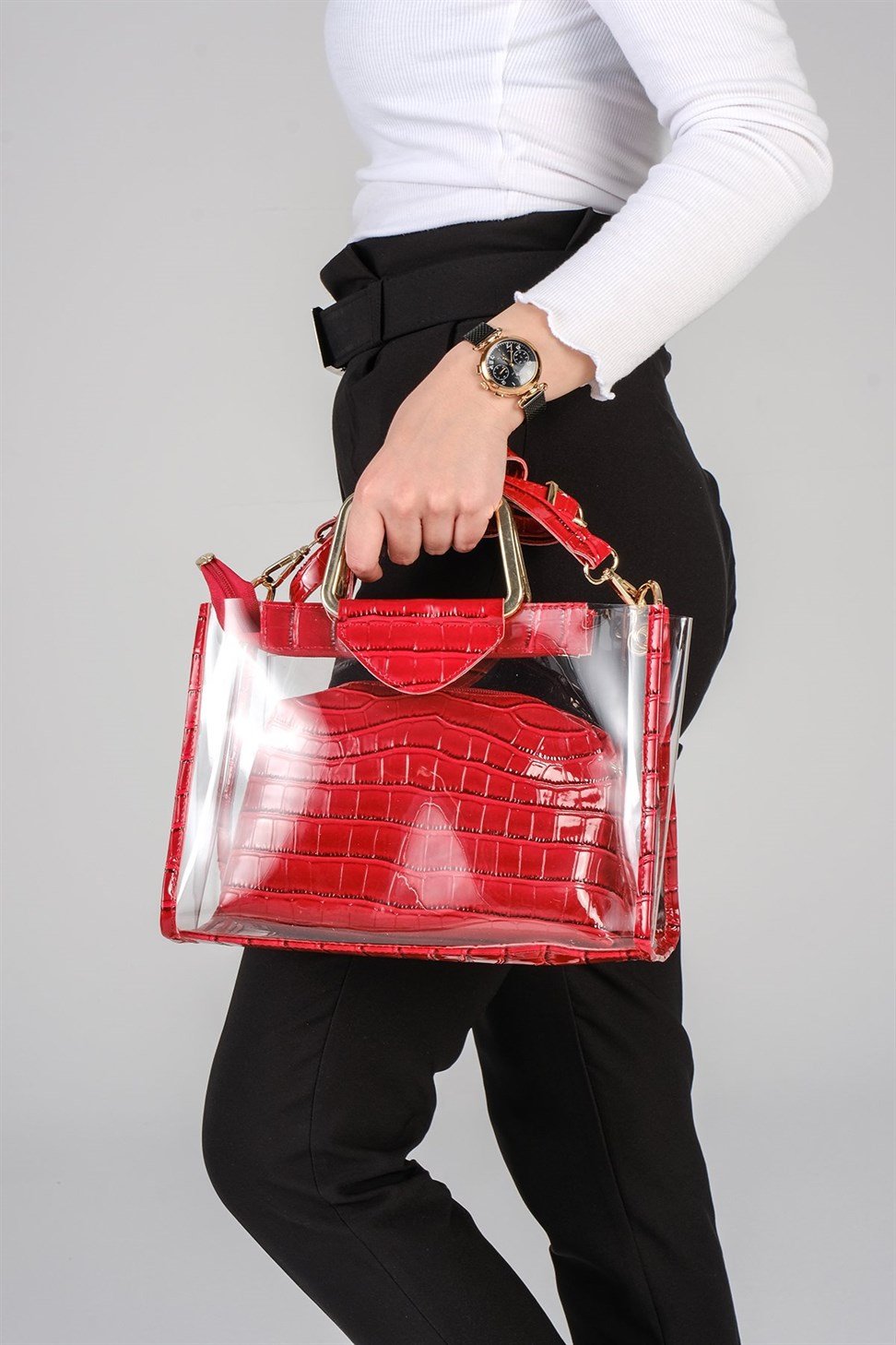 Kadın Şeffaf Çanta KIRMIZI KROKO