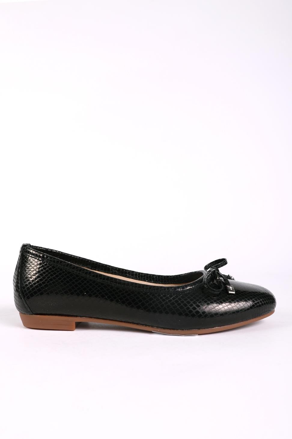 Kadın Hakiki Deri Kroko Desenli Babet Ayakkabı Yılan Siyah