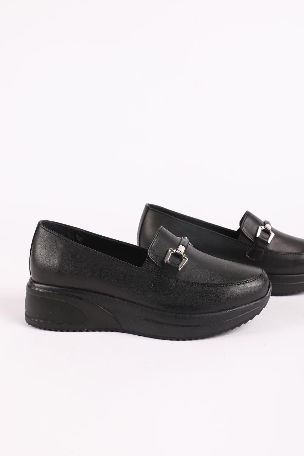 Kadın Hakiki Deri Toka Detaylı Comfort Ayakkabı Siyah (20-2983-)