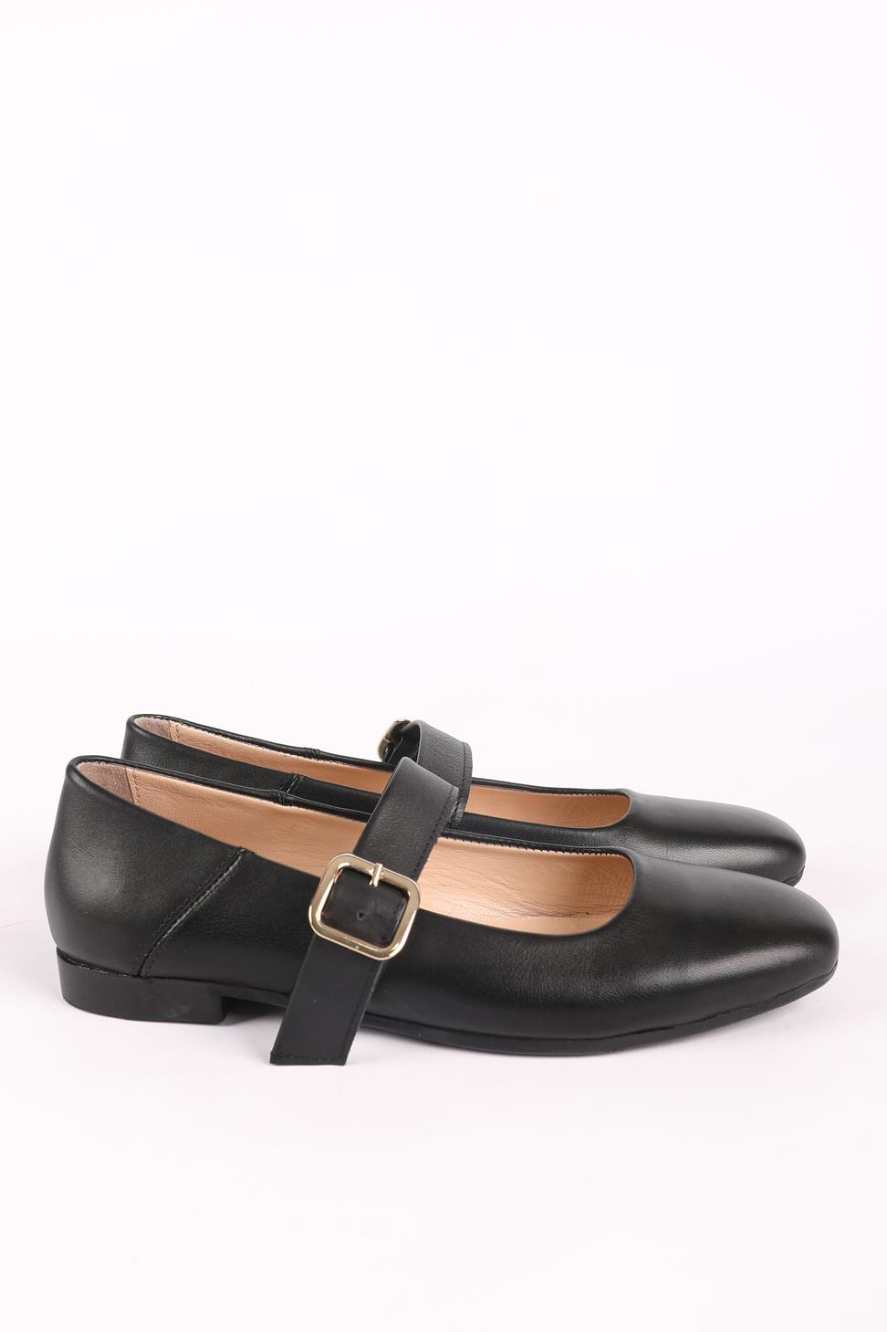Kadın Hakiki Deri Üstten Bantlı Babet Siyah
